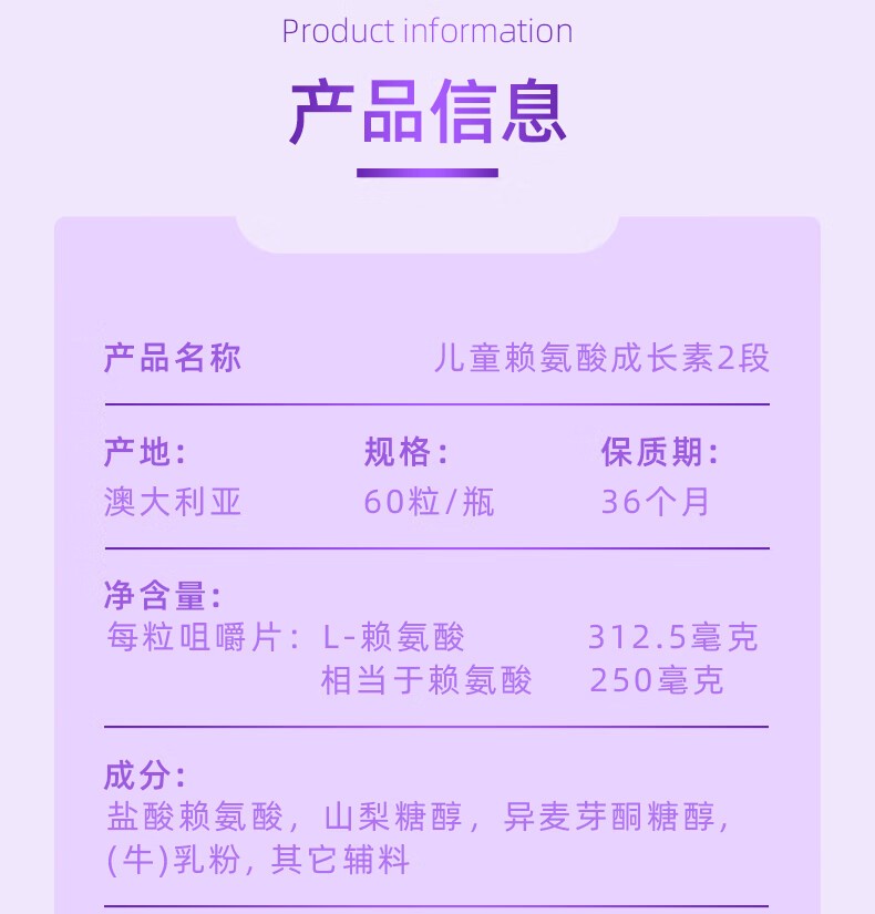 天然原料提取,富含赖氨酸,帮助蛋白质被人体充分吸收,黑加仑口味,助力宝宝健康成长,新西兰原装直邮