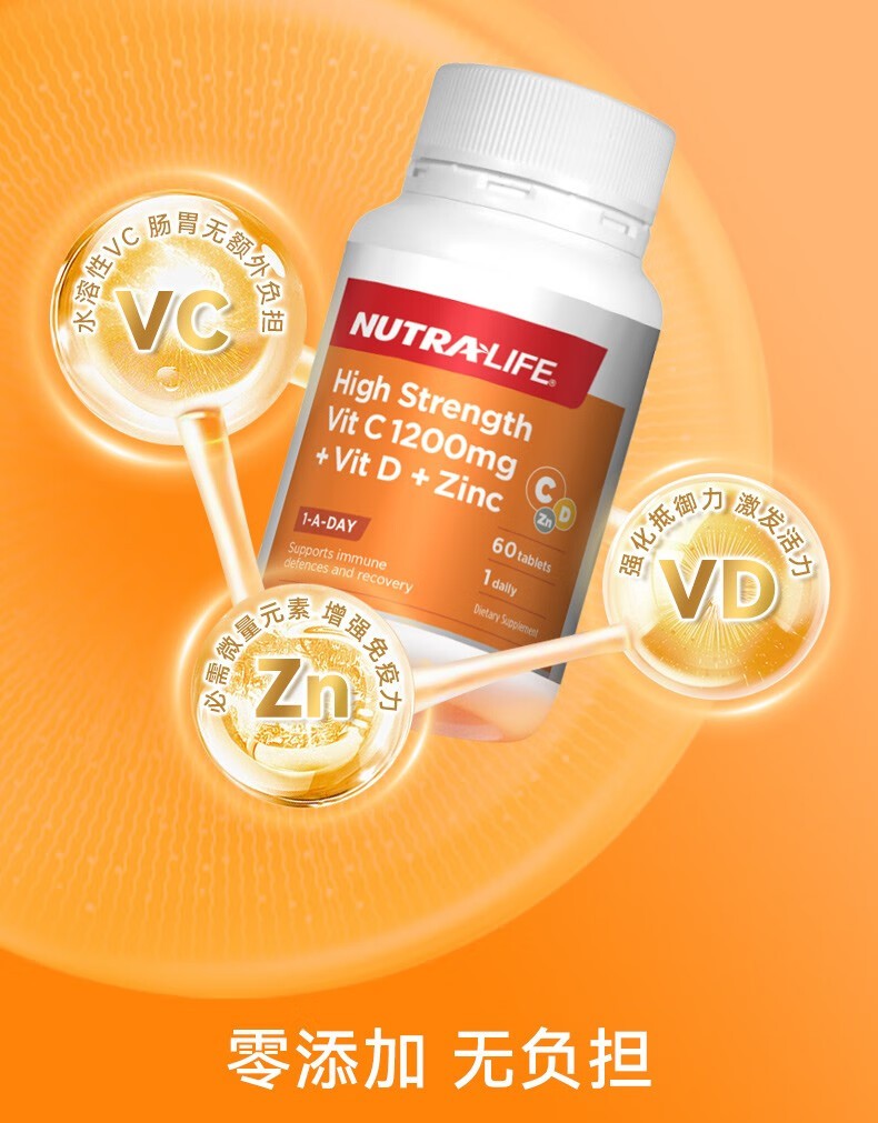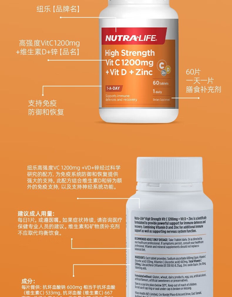 Nutralife纽乐/VC+VD+锌/复合维生素片/多维60粒/27年2月